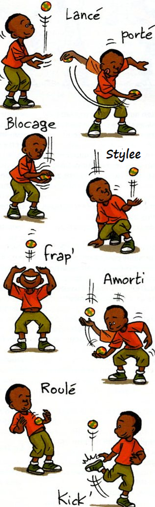 Les TOSS : Lancer, Envoyer, Les KATCH : Attraper, Les KARY : Porter, Les BLOCK : Bloquer, Les ROLL : Rouler,
